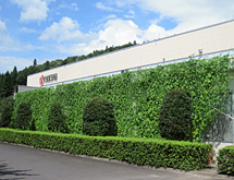 墻面綠化(福島棚倉工廠) 京瓷集團開展墻面綠化活動,利用苦瓜、絲瓜、牽牛花等爬蔓植物覆蓋窗戶,遮擋夏季的強烈日照,從而達到有效抑制室內溫度上升的效果.