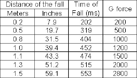 下圖表顯示了將物體放在硬木或乙烯基地板上時(shí)達(dá)到的G力.在水泥地面上的力要高得多.