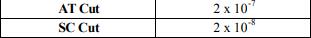 等式(4)表示在給定幅度下持續振蕩的條件,并且與頻率無關。而等式(5)表示振蕩的頻率。工作點處的電抗與頻率曲線的斜率dX/df有時被稱為石英的“可拉性”。對于不同的晶體切口和泛音,串聯諧振的W / Hz的dX / df的一些典型值如表1所示。 電路元件的電抗是振蕩環路頻率的原因。假設幾年后DXC以外的所有元件的電抗都會發生變化。為了在新條件下發生共振,仍必須滿足等式(5)。