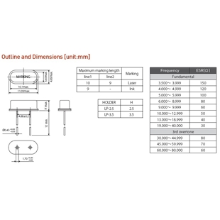| 希華晶振參數(shù) | 插件晶振LP-2.5,LP-3.5 |